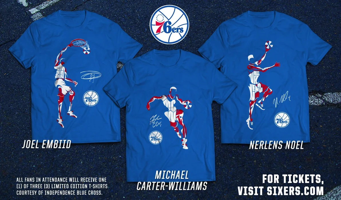 - Fans will be given one of three shirts featuring a single player (MCW, Joel Embiid or Nerlens Noel)