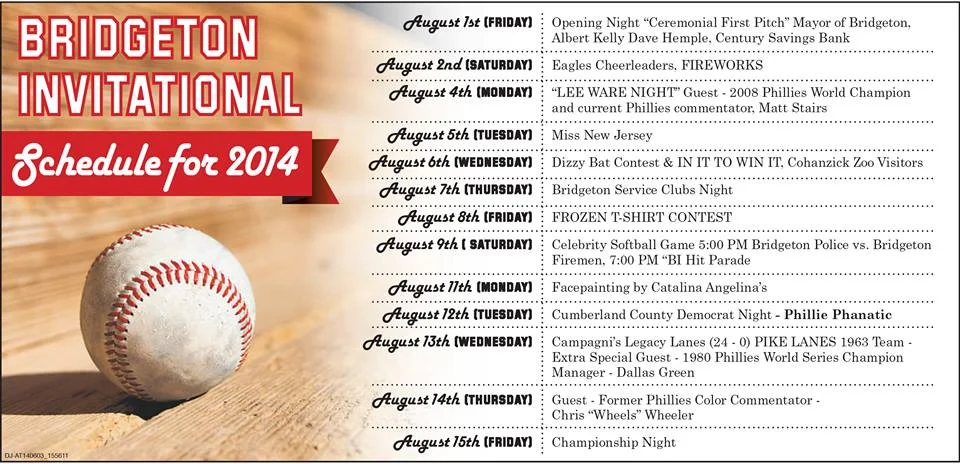 Anyone who has ever attended the BIT knows the participating teams are the real attraction - but, as always the tournament has built a strong promotional schedule around the two weeks of games. Some of the highlights (for collectors) will be the appearances by former Phillies' Matt Stairs and Dallas Green (Update: Dallas Green has cancelled his appearance). You can check out the full schedule (from the BIT FB page) below:
