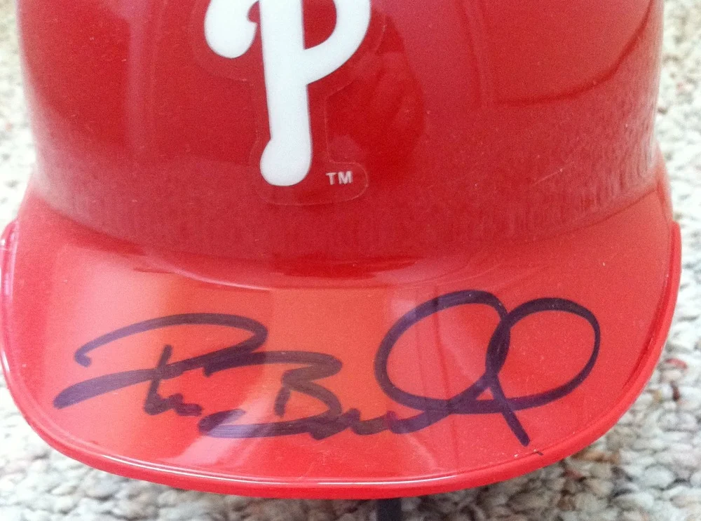 For nine years, Pat Burrell was an important part of the Phillies lineup - mashing 251 home runs, driving in 827 runs and providing leadership that lead to a World's Championship in 2008. From the day he was selected with the team's first pick in the 1998 amateur draft, "Pat the Bat" was a sought after autograph signer. Though Burrell's autograph has been very inconsistent over the years, collectors can still look at some consistent letter formations - like his double "L's" and for the most part, the capital "B" that starts his surname.