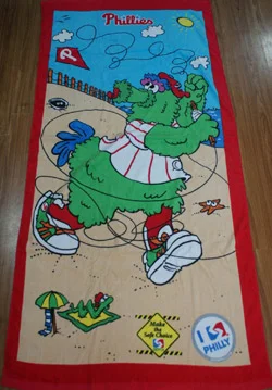 Children attending tonight's game against the Washington Nationals will receive a Phillie Phanatic beach towel. Produced in varying degrees of quality, the beach towel promotion has been an annual favorite for kids across the Delaware Valley since the 1980s.