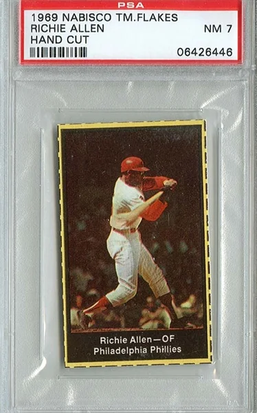 As you may expect, condition is a real issue with these cards. It is not unusual to find them mis-cut, bent or scuffed from boxes rubbing together in shipping or on the shelf. Full panels and/or boxes are more valuable. Overall, it is a fairly difficult set to assemble, particularly in high-grade condition. Dick Allen is the only Phillie to be represented in the set. His card is fairly common - typically selling for $10 or less (ungraded).